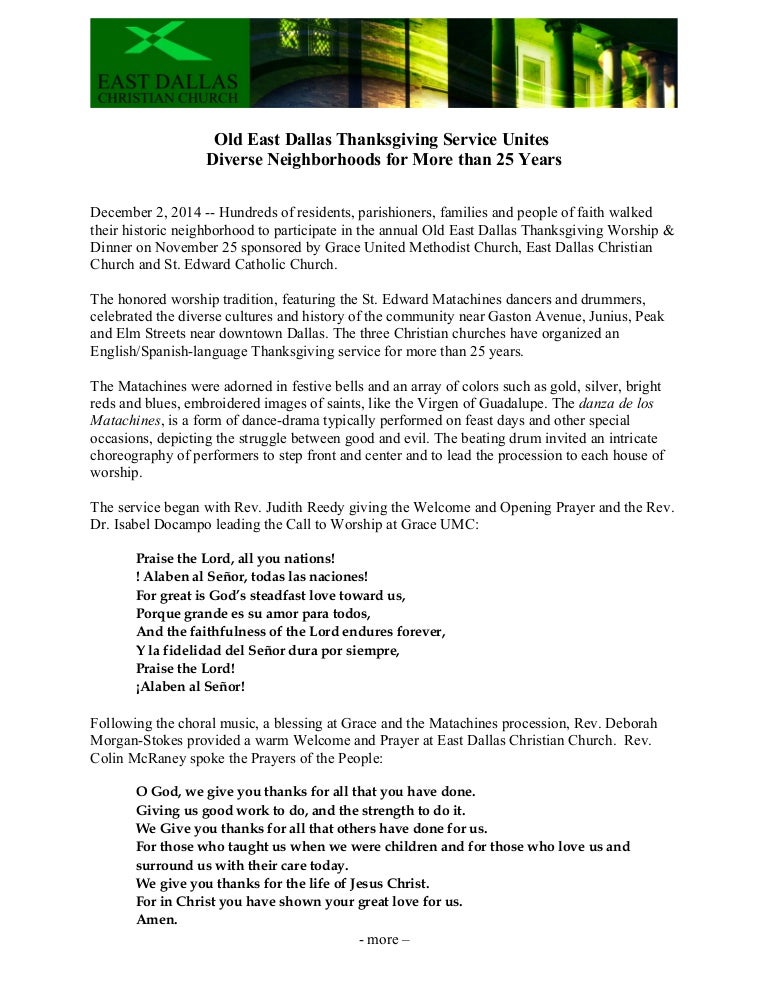 Press Release Old East Dallas Thanksgiving Service Unites Community 1